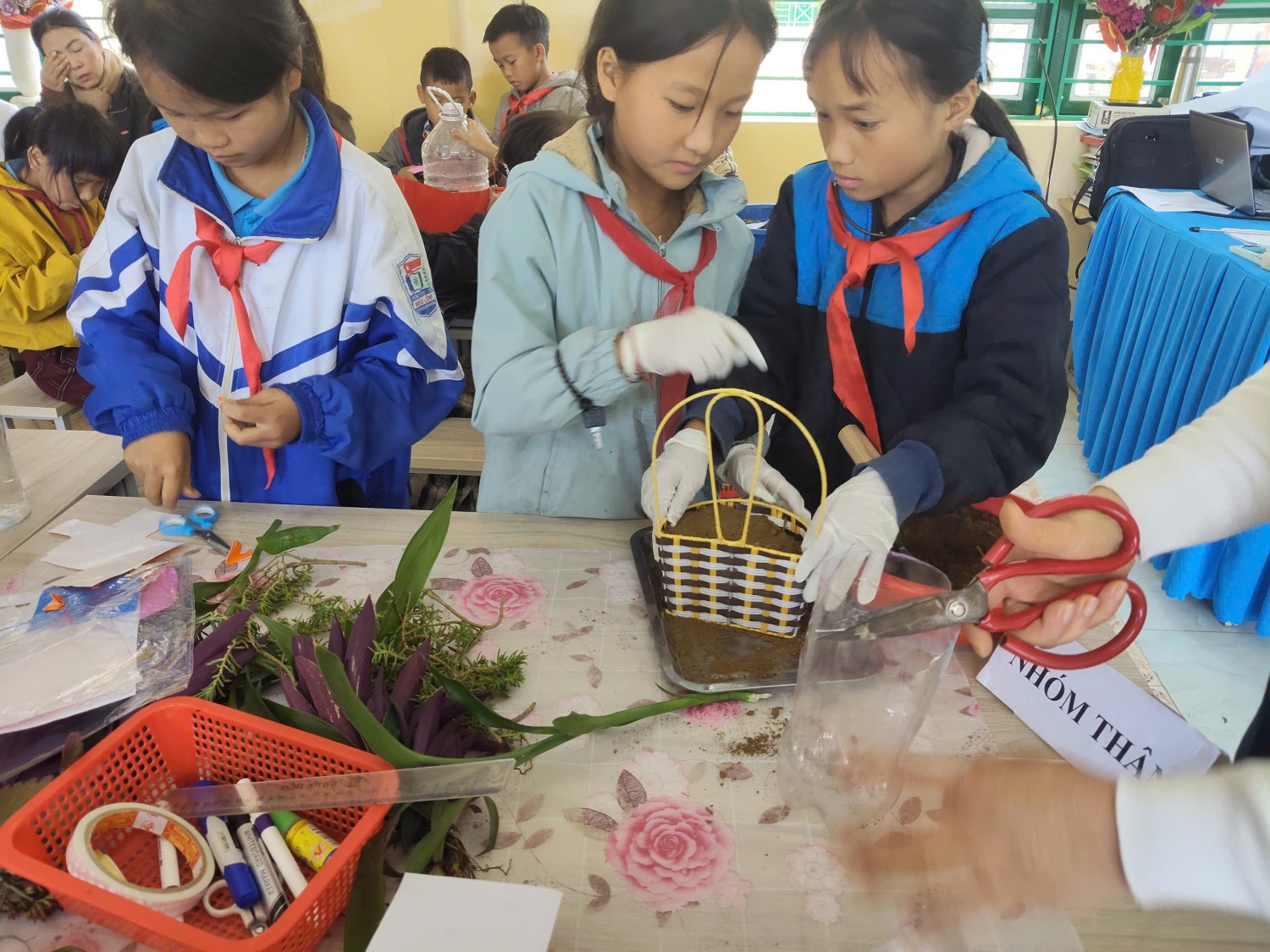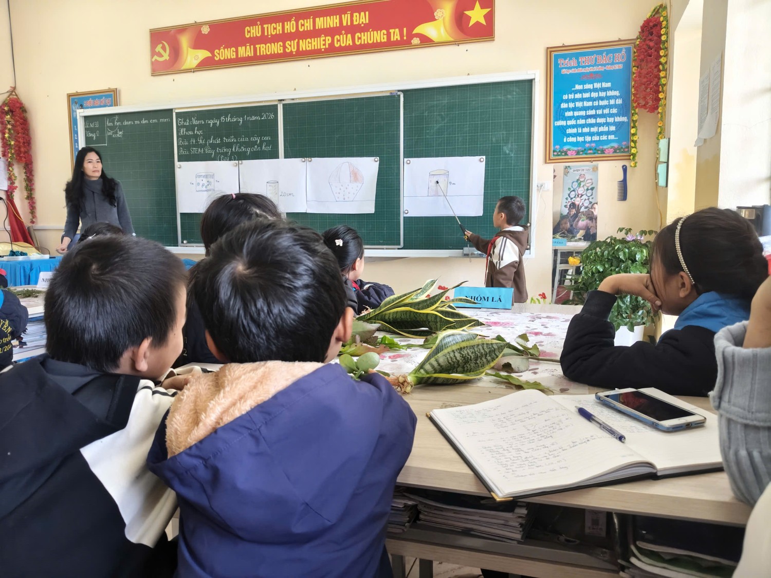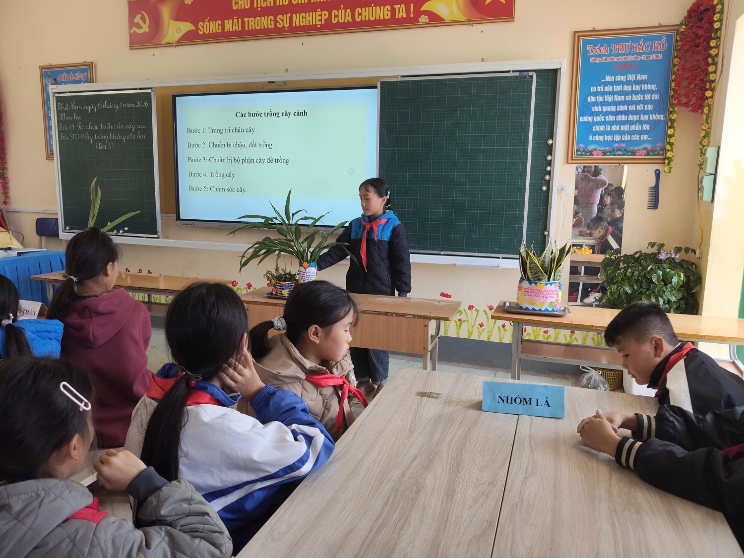 2. Cô Bùi Thị Thắm dạy phần: Thực hành trồng cây không cần hạt; Trưng bày và đánh giá sản phẩm.