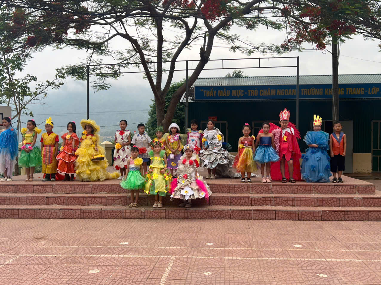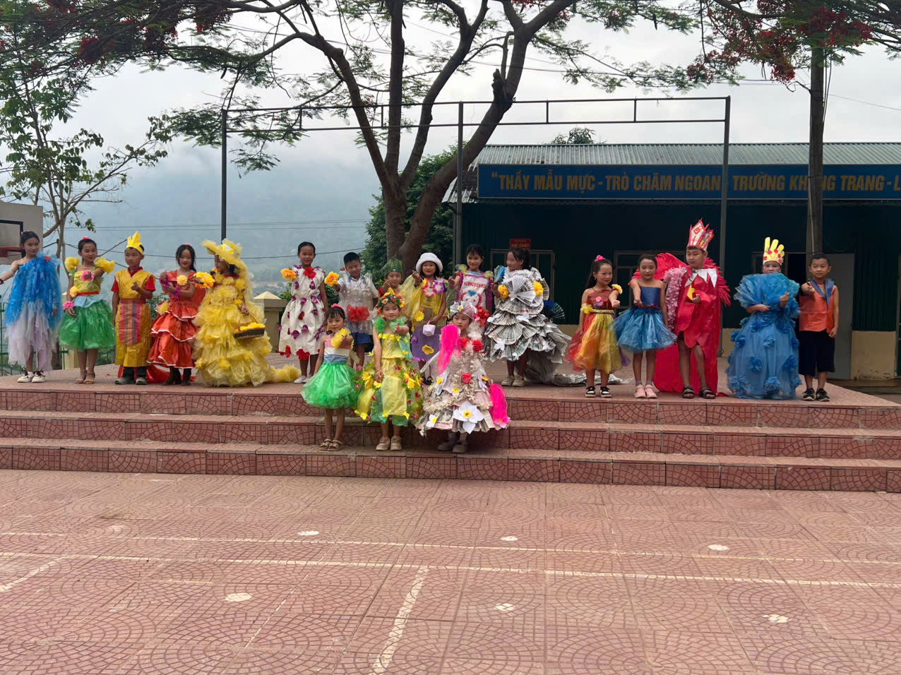 Từ những vật liệu tưởng chừng như bỏ đi – như giấy báo, túi nilon, chai nhựa, bìa carton hay muỗng nhựa – qua bàn tay khéo léo và óc sáng tạo của các bạn học sinh, chúng đã được “biến hóa” thành những bộ trang phục đầy màu sắc, độc đáo và mang tinh thần thời trang bền vững. Không chỉ thể hiện khả năng thẩm mỹ và sự sáng tạo, mỗi bộ trang phục còn mang đến một thông điệp ý nghĩa: Hãy tái sử dụng – hạn chế rác thải – bảo vệ môi trường sống của chúng ta.