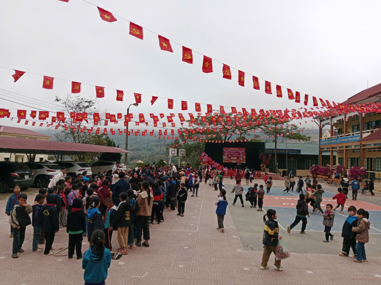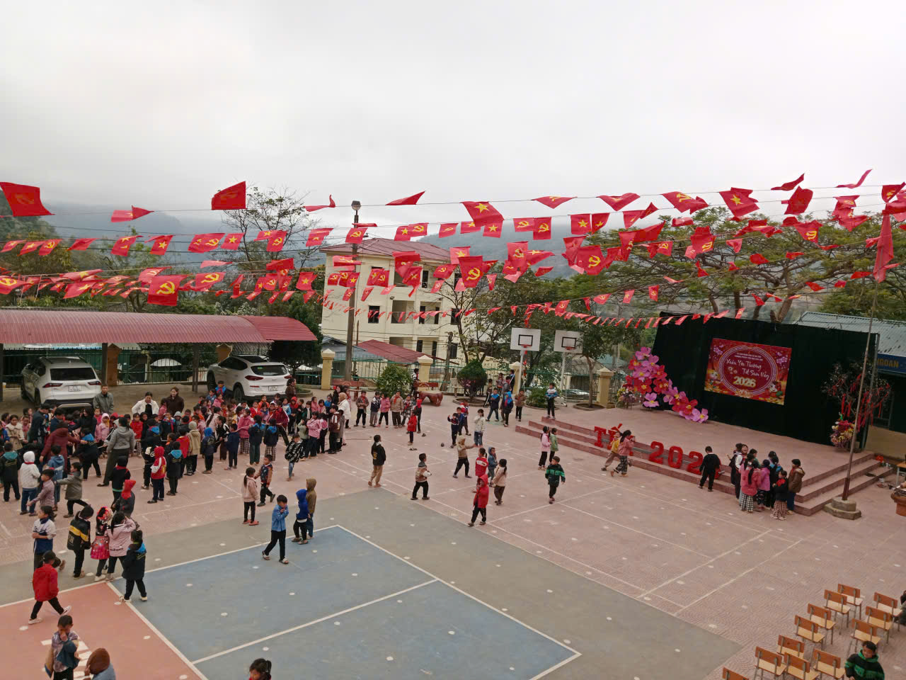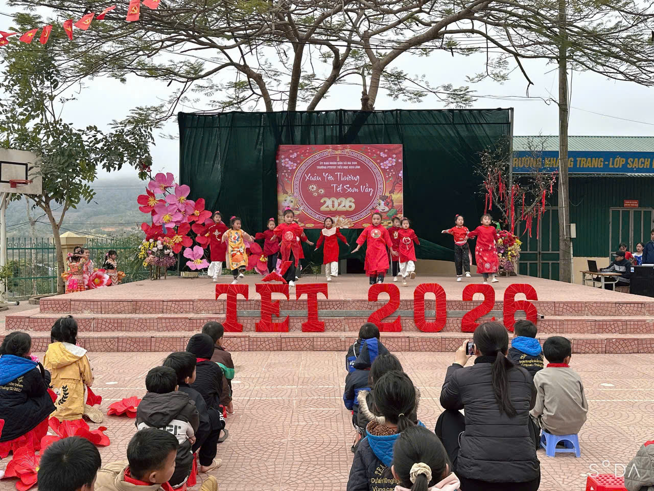 Tổ chức trang trí trường lớp, tổ chức lao động, vệ sinh môi trường đón Xuân: Treo khẩu hiệu cổng trường: “Chúc mừng năm mới” từ ngày 9/2/2026. Các lớp trang trí đẹp theo chủ đề Mừng Đảng - Mừng Xuân. Hưởng ứng Tết trồng cây